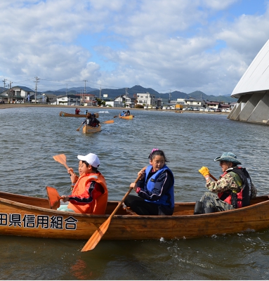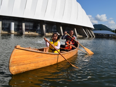 森吉四季美湖紅葉祭りでカヌー体験を実施。800人の方に乗船していただきました。